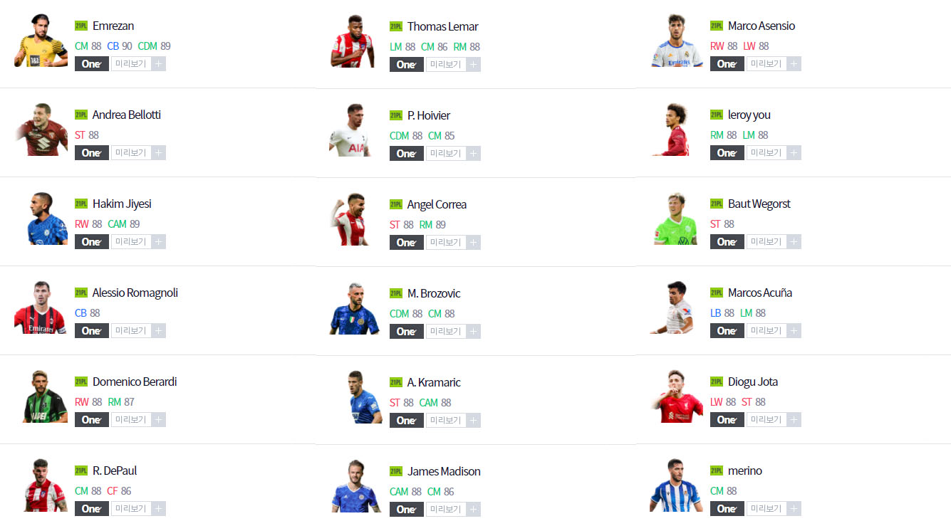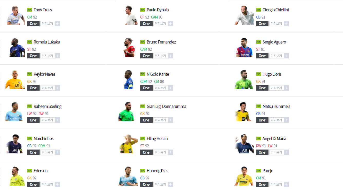 Do số lượng của mùa giải này là cực nhiều nên chúng tôi chỉ gửi tới các bạn một phần những cầu thủ có chỉ số ở mức 86 trở lên