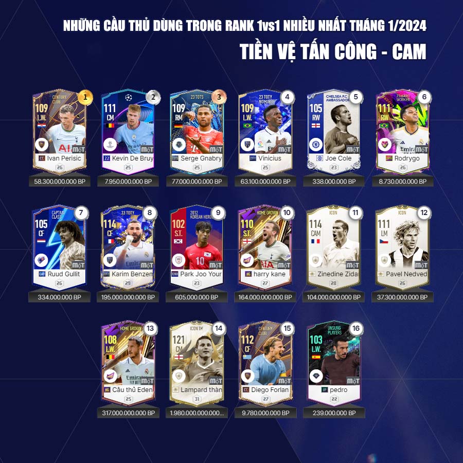 Dưới đây Fo4vn.com xin được gửi tới các bạn đọc danh sách các cầu thủ các cầu thủ được dùng nhiều tháng 1 theo từng vị trí