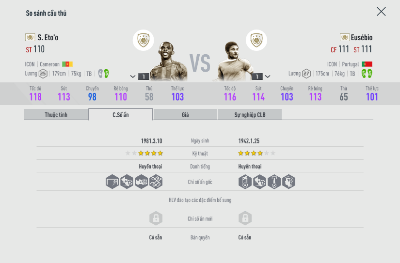 Với mức giá của cả hai đang ngang nhau, câu hỏi luôn được các nhà cầm quân online phân vân khi chọn lựa tiền đạo cắm cho mình ở mùa icon là Eto hay Eusebio ?