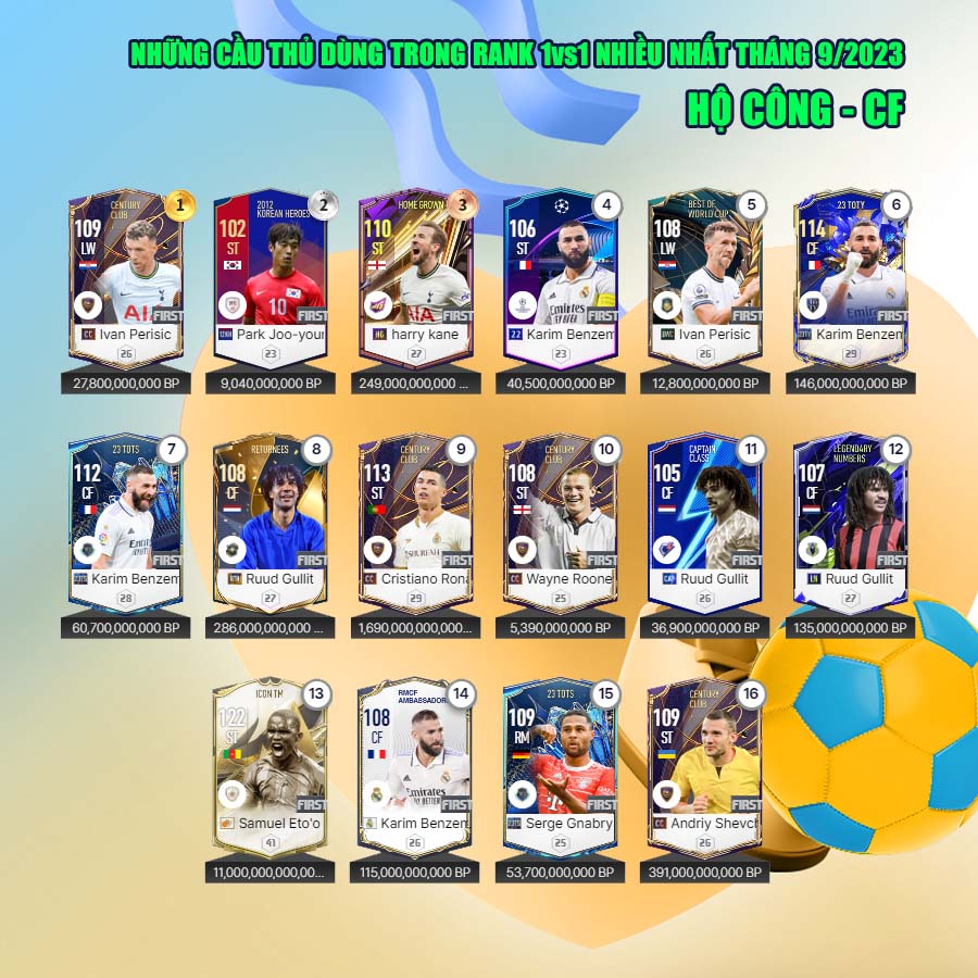Dưới đây là những cầu thủ được các HLV sử dụng nhiều nhất trong tháng 9 vừa qua, tất nhiên sự xuất hiện của hai mùa giải 23HW và FC Ambassador là chưa nhiều.